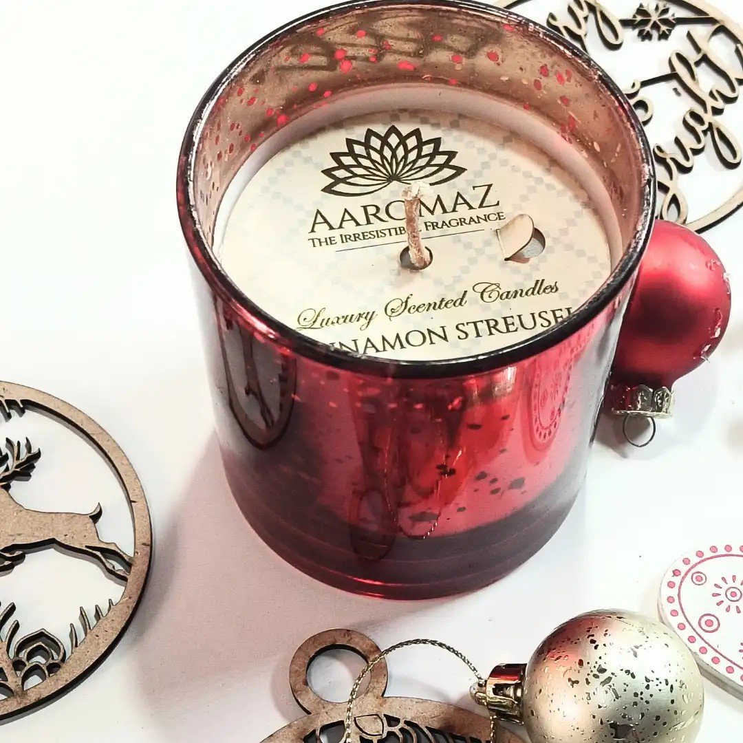 Cinnamon Streusel Scented Candle – Holiday Dessert-Inspired Fragrance | AaromaZ |150 Red Jar