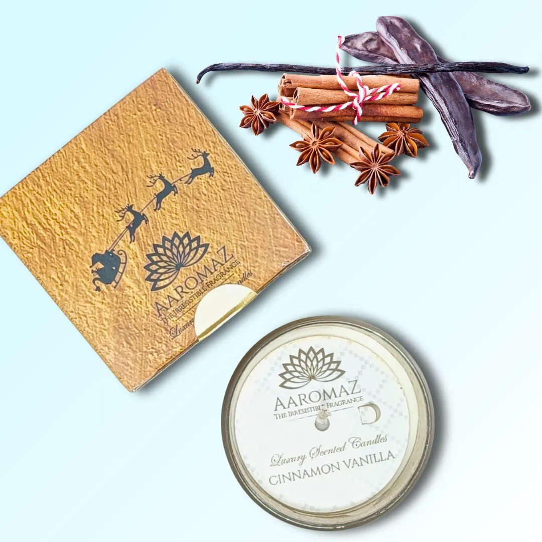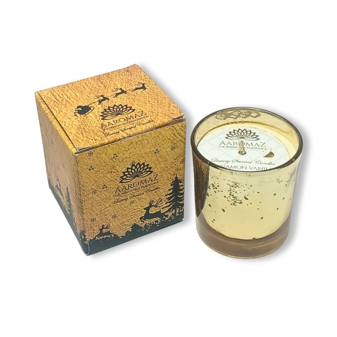 Cinnamon Vanilla Scented Candle – Sweet & Spiced Holiday Blend | AaromaZ|150G Golden Jar