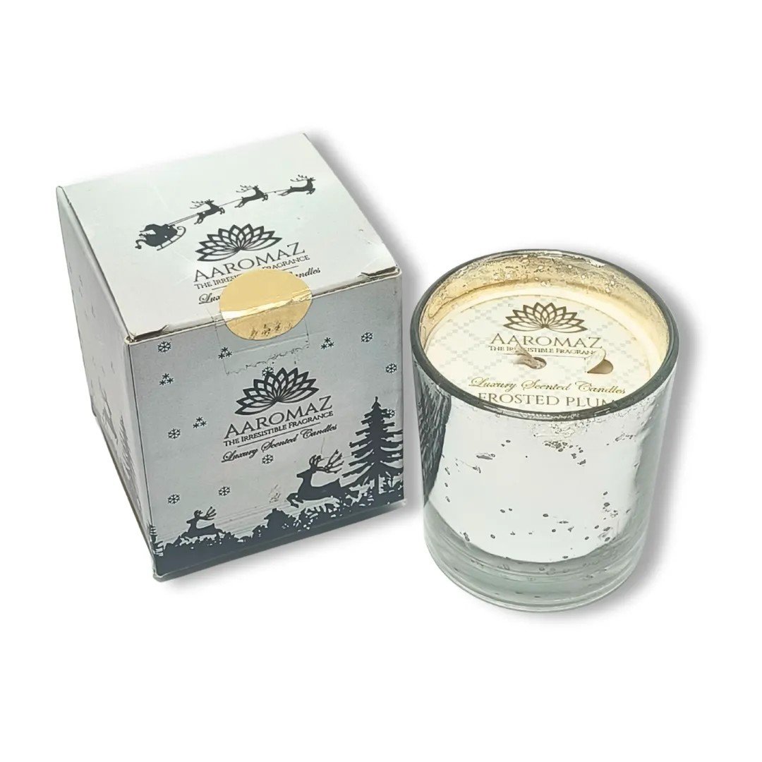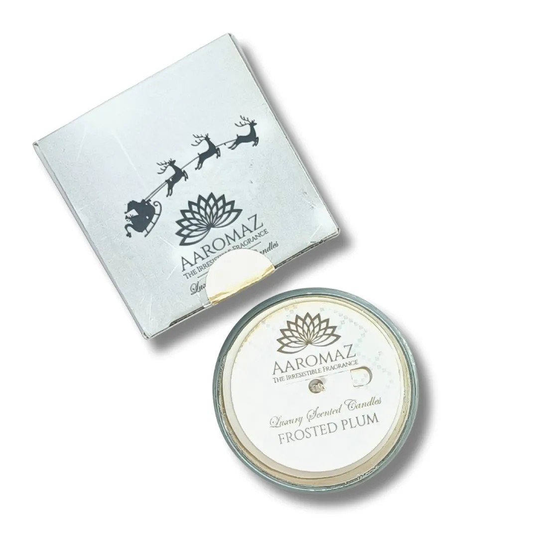Frosted Plum Scented Candle – Sweet and Fruity Holiday Delight | AaromaZ|150g Silver Jar
