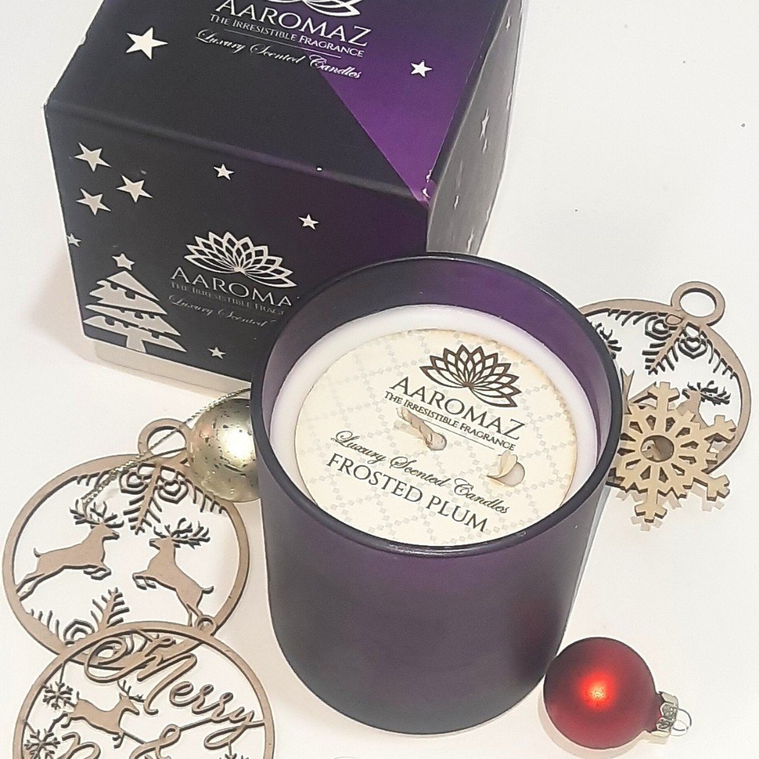 Frosted Plum Scented Candle – Sweet and Fruity Holiday Delight | AaromaZ