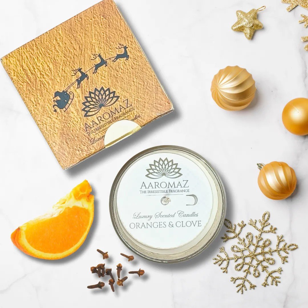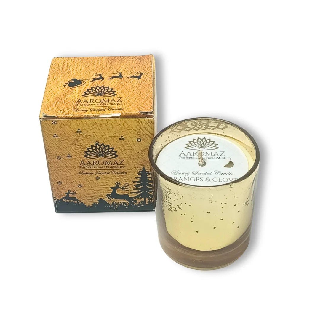 Orange and Clove Scented Candle – Zesty & Warm Holiday Fragrance | AaromaZ |150g Golden Jar